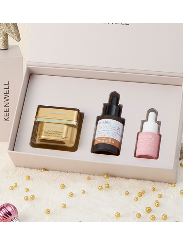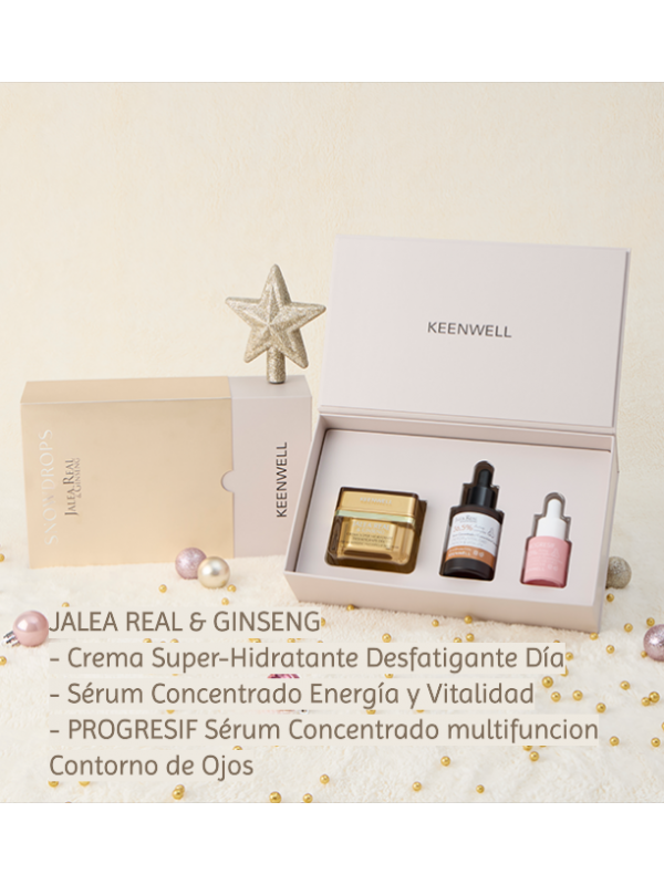 PACK Navidad 2024 Jalea Real & Ginseng de Keenwell. Contiene Crema Super-Hidratante Desfatigante Día, Sérum Concentrado Sérum Concentrado Energia y Vitalidad 36,5% Complejos activos revitalizantes y PROGRESIF Sérum Concentrado multifuncional para el Contorno de Ojos.
